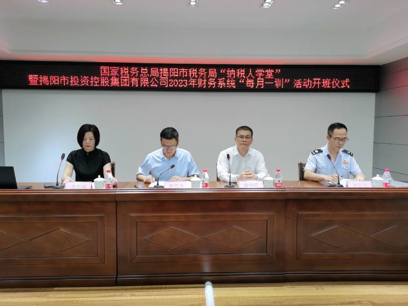 揭陽市稅務(wù)局副局長曾偉昭、市投控集團(tuán)董事長林奕濤出席開班儀式。