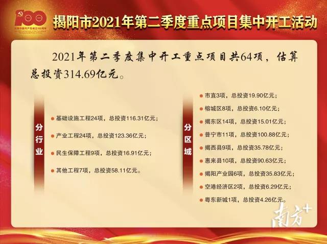 隨著施工機(jī)械的馬達(dá)聲“轟隆隆”響起,揭陽(yáng)市“引龍工程”的號(hào)角正式吹響。不久之后,龍頸水庫(kù)的一股股甘流將緩緩穿過(guò)揭陽(yáng)中心城區(qū),橫跨揭東區(qū)、普寧市等地,向遠(yuǎn)方奔騰……這是揭陽(yáng)市2021年第二季度集中開(kāi)工64個(gè)重點(diǎn)項(xiàng)目中的亮點(diǎn)之一。在建黨100周年之際,揭陽(yáng)牢牢把握“新發(fā)展階段、新發(fā)展理念、新發(fā)展格局”的新要求,緊緊圍繞省委、省政府對(duì)揭陽(yáng)的發(fā)展定位,加速推進(jìn)重大項(xiàng)目建設(shè),持續(xù)掀起擴(kuò)大有效投資的熱潮。